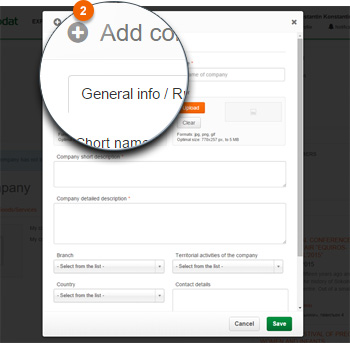 Only an authorized user can create a page of the organization. If you have an account on the service Expodat, you must sign up.