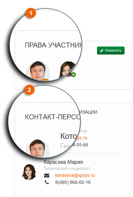 Любой участник организации может быть добавлен как контакт-персона организации.