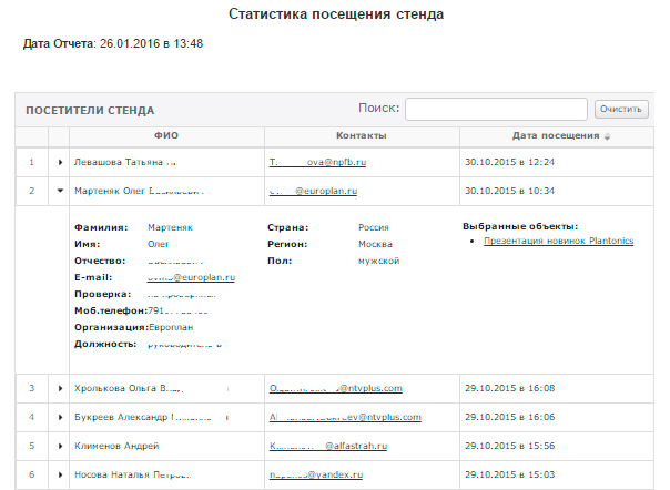 - Работу с Вашими целевыми посетителями выставки Вы можете начать, не дожидаясь окончания мероприятия и обработки результатов: данные доступны в режиме он-лайн на сайте.